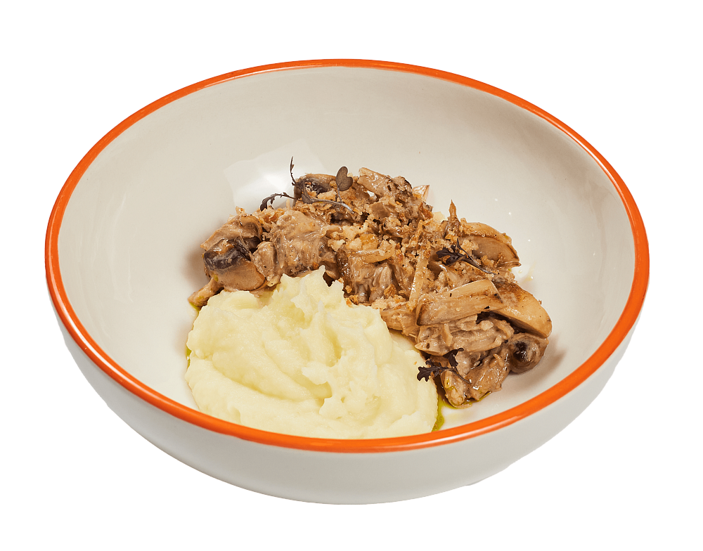 Бэби картофель из дровяной печи со сливками, грибами и моцареллой