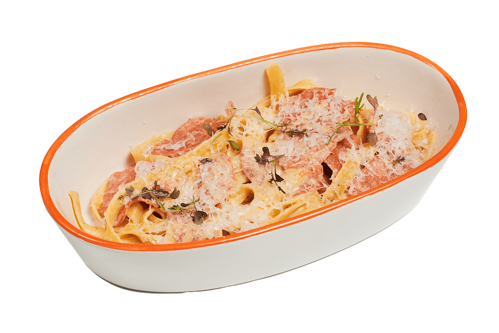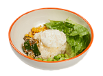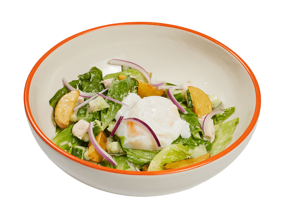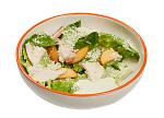 Куриная грудка, салат Романо, пармезан, соус сливочный, пудра из порея